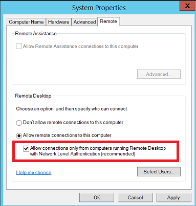 2. Check checkbox with "Network Level Authentication" (NLA) as on picture below in red box.