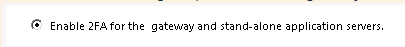 An admin can activate 2FA only on the gateway (and therefore NOT on the application servers), BUT in this case 2FA will only be required for users who connect via the gateway.