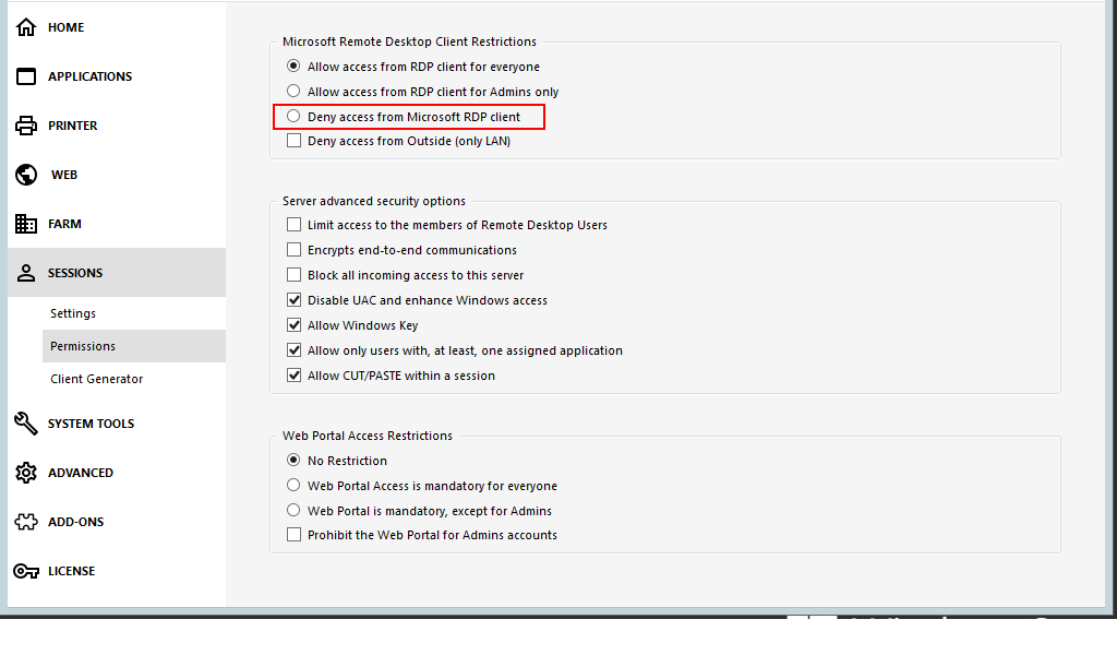Enabling this option, users can only use the Web Portal or .connect files: