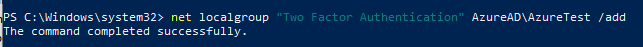 net localgroup “Two Factor Authentication” AzureAd\AzureTest /add