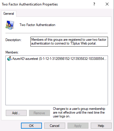 - Two Factor Authentication is the name of the local group previously created