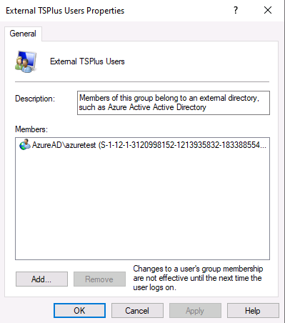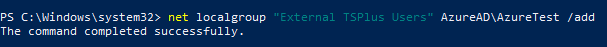 net localgroup “External TSPlus Users” AzureAd\AzureTest /add