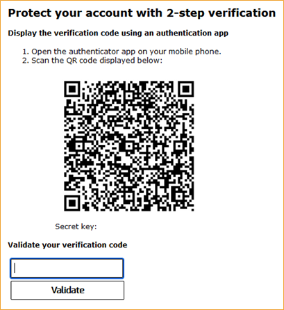 Enabling two factor authentication