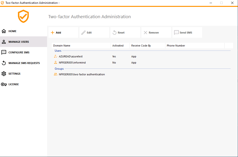 - As a result, the user azuread\azuretest is displayed as enrolled in the Two Factor Authentication Administration program, in the Manage Users tab: