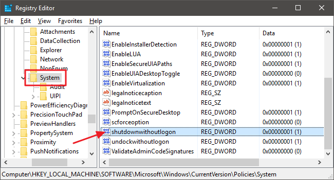 HKEY_LOCAL_MACHINE\SOFTWARE\Microsoft\Windows\CurrentVersion\Policies\System