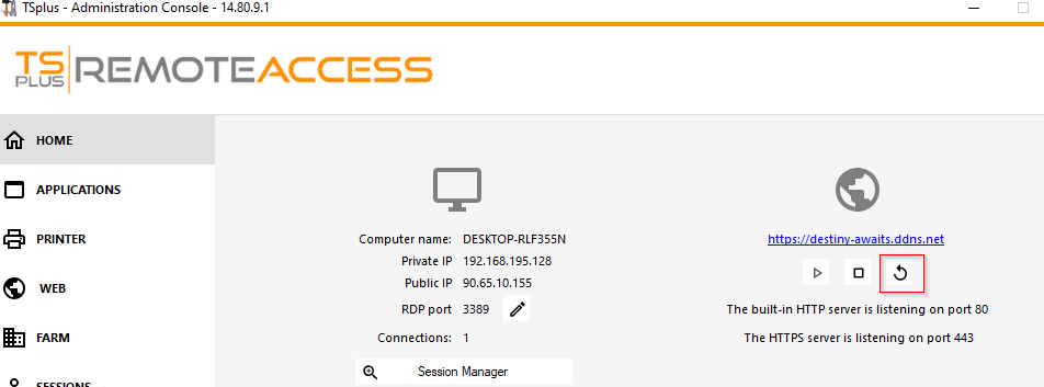 It will be necessary to stop the web server and restart it from the home tab of the AdminTool :