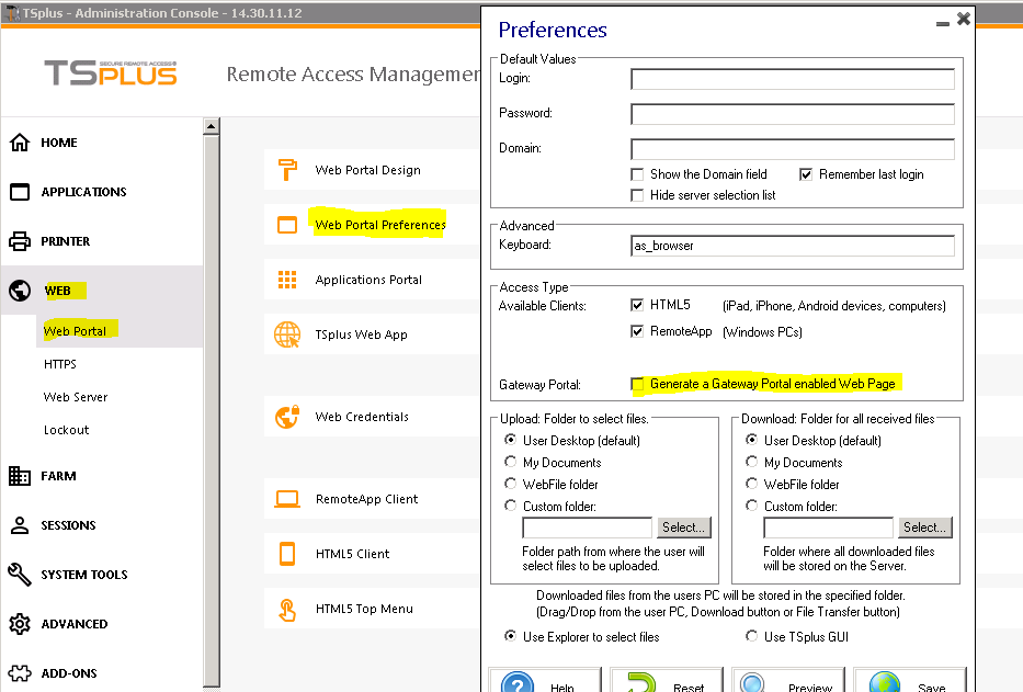 From your AdminTool\WEB\Web Portal\Web Portal Preferences, please uncheck the "Generate a Gateway Portal enabled Web Page" :