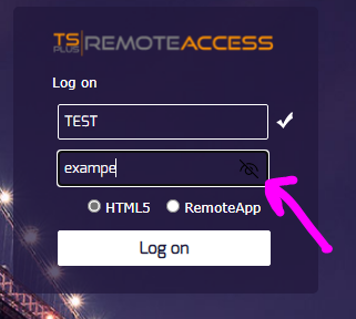 That is because the "show password" option is not a TSplus feature, but a feature of the Edge browser!